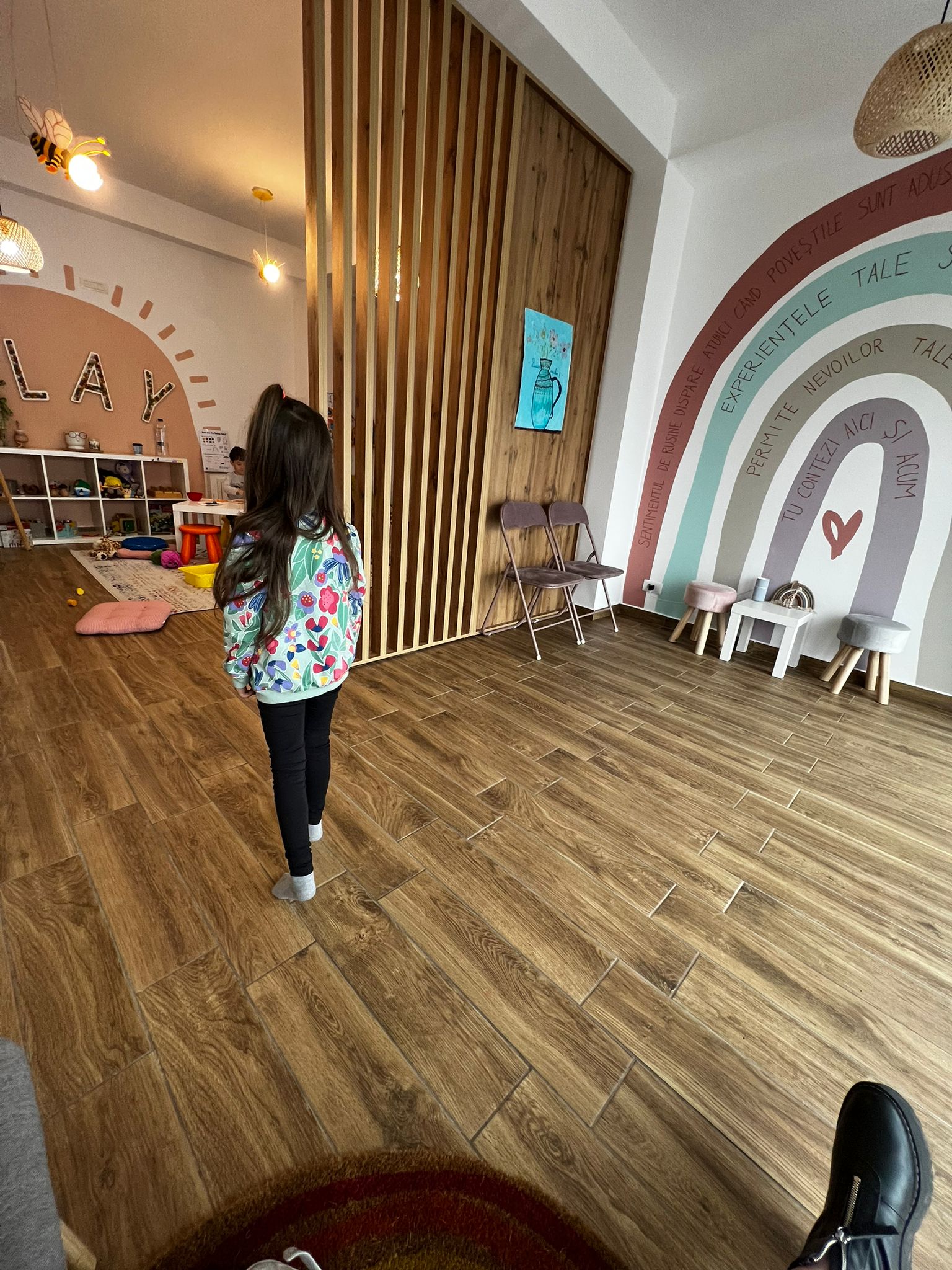 La început stăteam cu ea și, de dincolo de paravan, mă uitam hipnotizată la muntele de răbdare al cărui vârf părea că nu poate fi atins de orice părinte-muritor-de-rând. Auzeam cum copiii prezenți aveau revelații cu noțiuni intrinseci așa cum noi, adulții, ignorăm complet că am putea avea. Zâmbeam de una singură pentru că știam că eram acolo unde trebuie să fiu pentru copilul meu, dar și pentru mine.