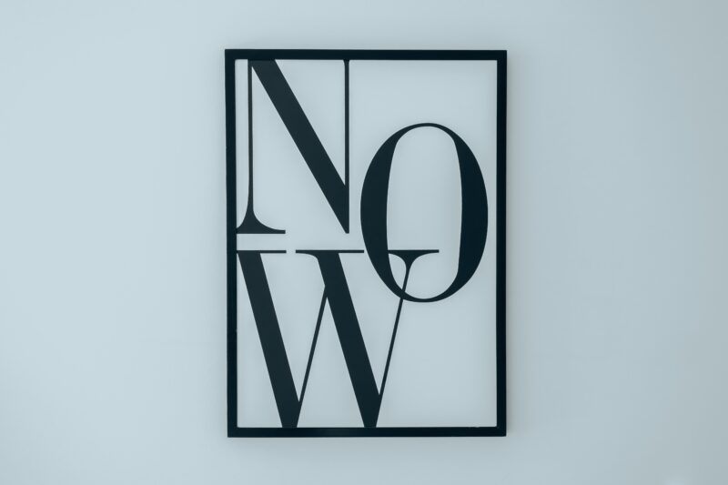 Photo by Egor Komarov: https://www.pexels.com/photo/now-letters-in-frame-12612261/